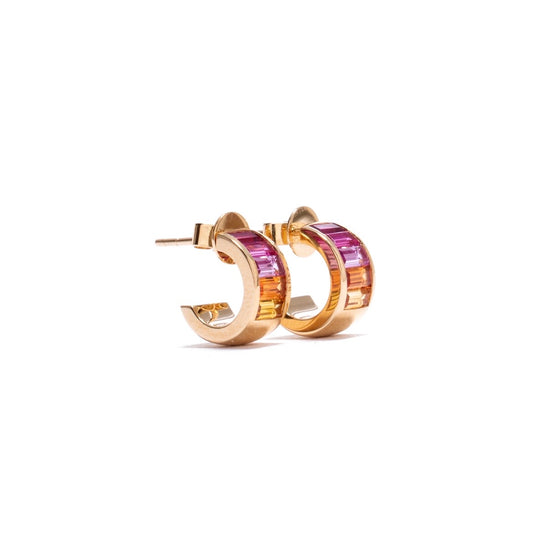Bluish green tourmaline and pink sapphire butterfly earring in 18k yellow gold