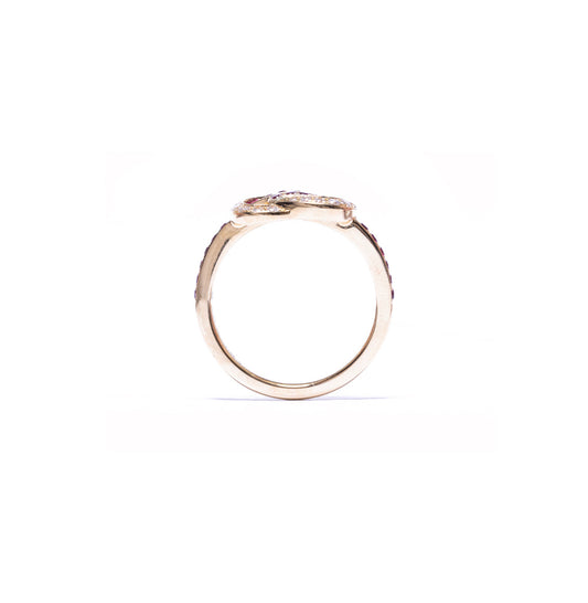 Ingot gold knot ring in 18k yellow gold with ruby and diamond