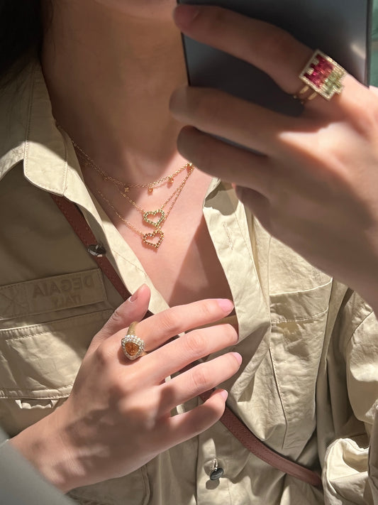 Heart necklace in 18k gold with color gems