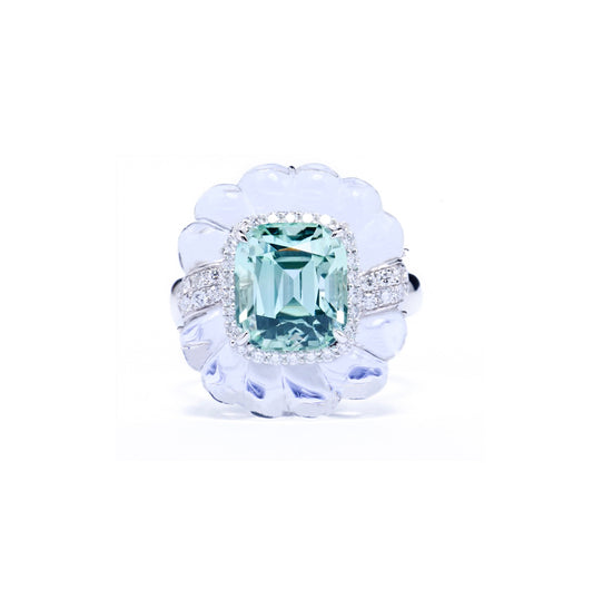 Mint green tourmaline and rock crystal ring in 18k white gold with diamond
